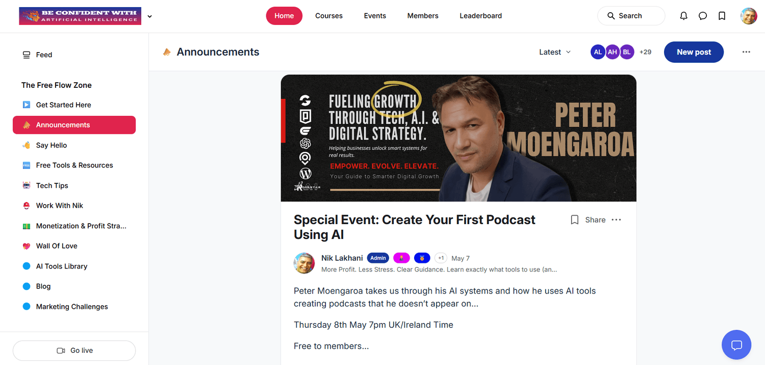 You get 7 days inside the "Be Confident With AI" community, totally free. No magic tricks, no confusing fine print, no awkward exit dance.