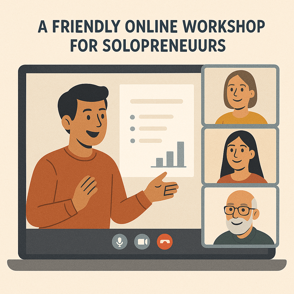 Join our weekly live calls where we explore tools, strategies, and workflows that real solopreneurs are using — with space for Q&A, feedback, and live demos. Show up, learn fast, and get unstuck.